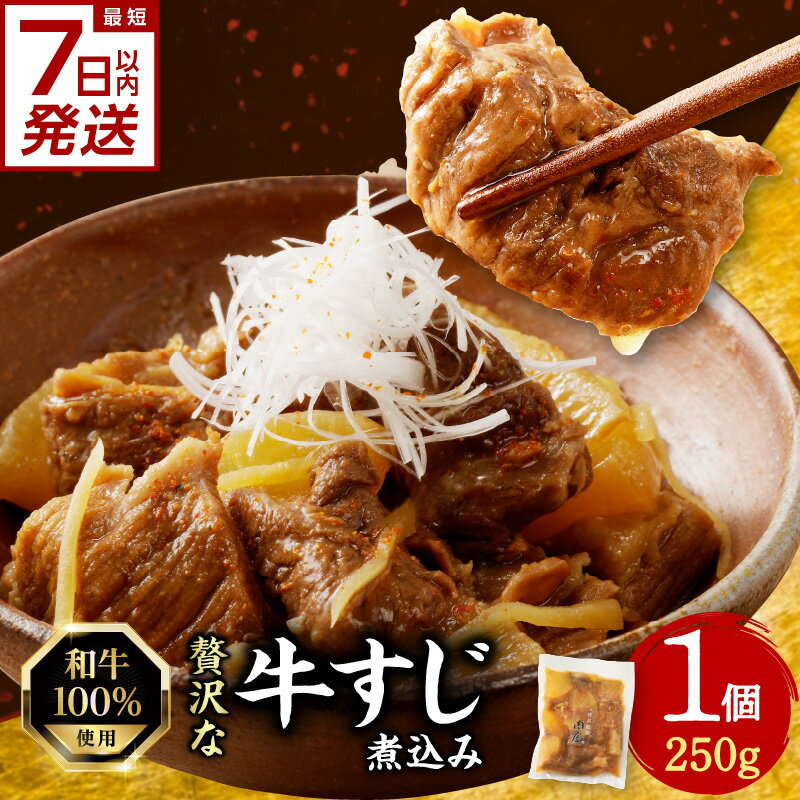 【ふるさと納税】 お試し1個のみ スピード発送!! 和牛100%の贅沢なすじ煮込み 250g 選べる個数(1〜8個) 牛すじ 国産 すじ すじ煮込 おつまみ 大根 牛すじ煮込み すじ煮込み 和牛 牛肉 惣菜