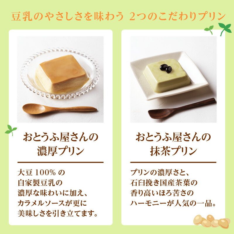 - 【ふるさと納税】おとうふ屋さんの豆乳プリンセット 24個(2連パック×12個)【選べる内容:濃厚プリン・抹茶プリン】自家製豆乳入り プリン スイーツ 詰め合わせ 食べ比べ デザート 豆乳 国産大豆使用 おとうふ工房いしかわ 和風スイーツ おやつ 子供 [AW001] 送料無料