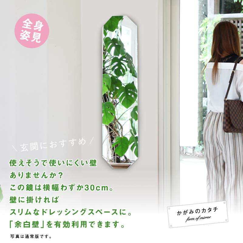 【ふるさと納税】 壁掛け ミラー 姿見 八角 クリスタル 鏡 玄関 賃貸 貼れる ノンフレーム 北欧 メイク 化粧 DIY シンプル 韓国 インテリア デザインミラー 変形 おしゃれ スタイリッシュ モダン 洗面所 リビング 寝室 藤枝市 静岡県