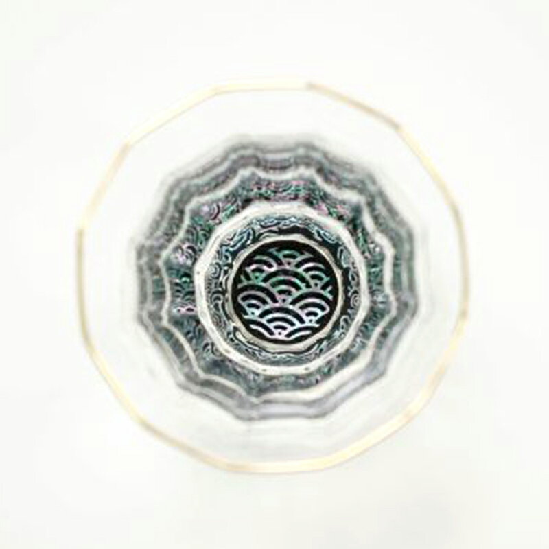 【ふるさと納税】金杯(万華鏡)青海波(貝入)黒 酒器 工芸品 ガラス 高岡漆器 あわび貝 漆 螺鈿ガラス上質感 十二角 金付杯 神秘的 輝き きれい おしゃれ FAD-0995
