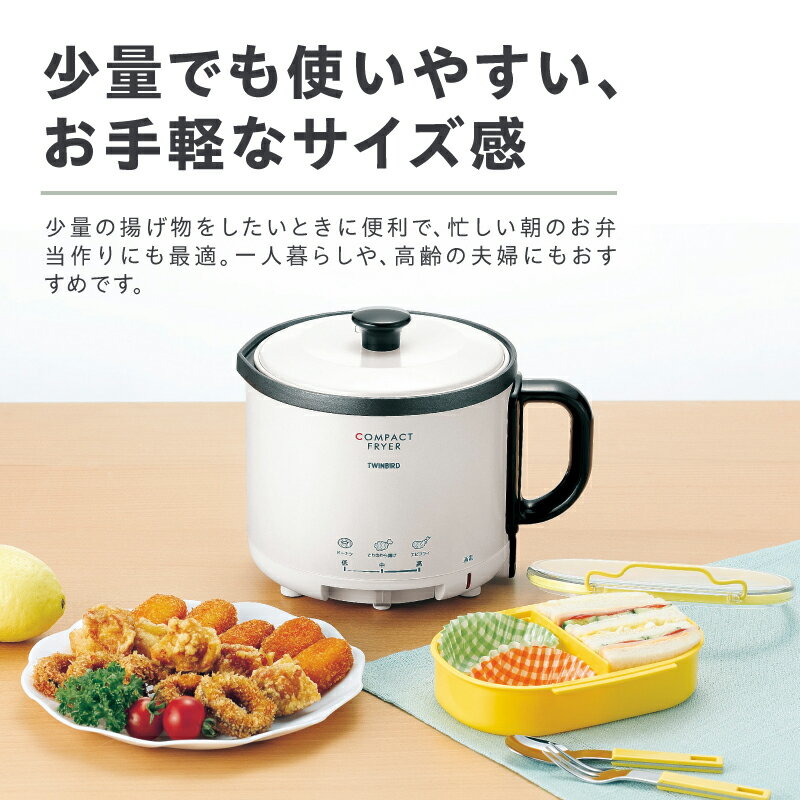 - 【ふるさと納税】 ツインバード コンパクトフライヤー (EP-4694PW) 【 卓上フライヤー フライヤー コンパクト 温度調整可 マグネット式 プラグ ふた付 ポット型 揚げ物 揚物 家電 キッチン家電 調理家電 TWINBIRD 新潟県 燕市 燕三条 】 [10000457]
