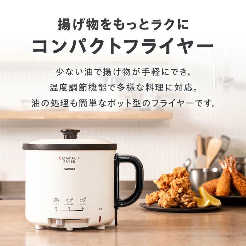 【ふるさと納税】 ツインバード コンパクトフライヤー (EP-4694PW) 【 卓上フライヤー フライヤー コンパクト 温度調整可 マグネット式 プラグ ふた付 ポット型 揚げ物 揚物 家電 キッチン家電 調理家電 TWINBIRD 新潟県 燕市 燕三条 】 [10000457]
