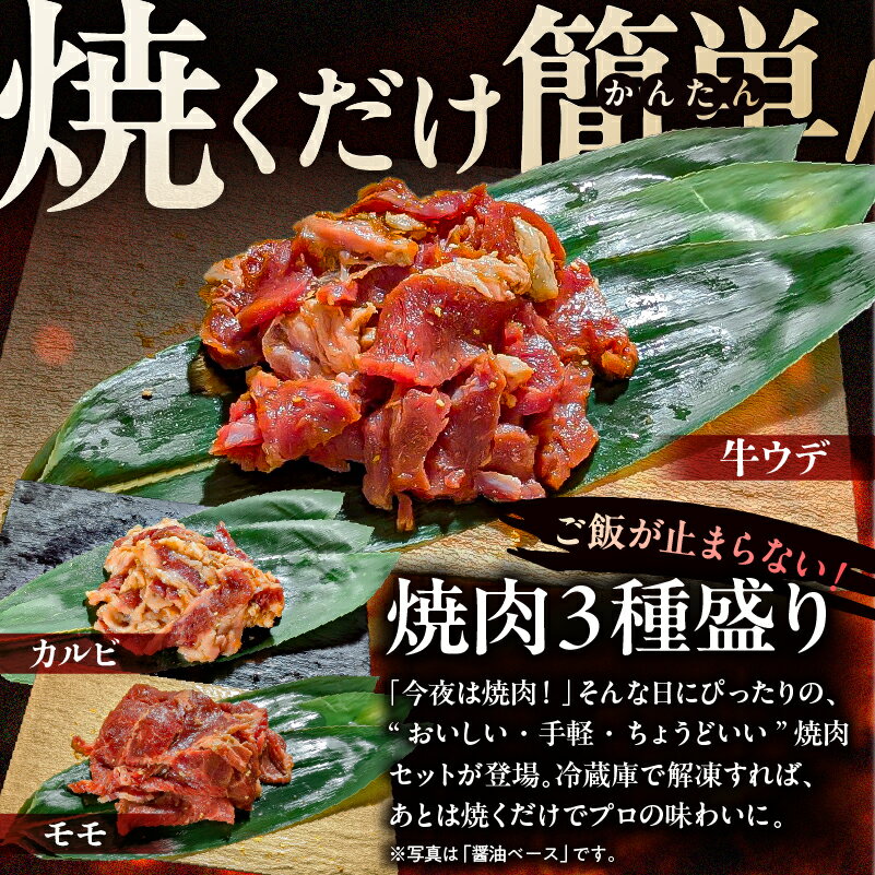 - 【ふるさと納税】【味が選べる】焼肉セット3種 東京都 渋谷区 味付け 醤油 味噌 豆板醤 簡単 600g BBQ バーベキュー 牛モモ 牛カルビ 牛ウデ 小分け 冷凍保存 送料無料