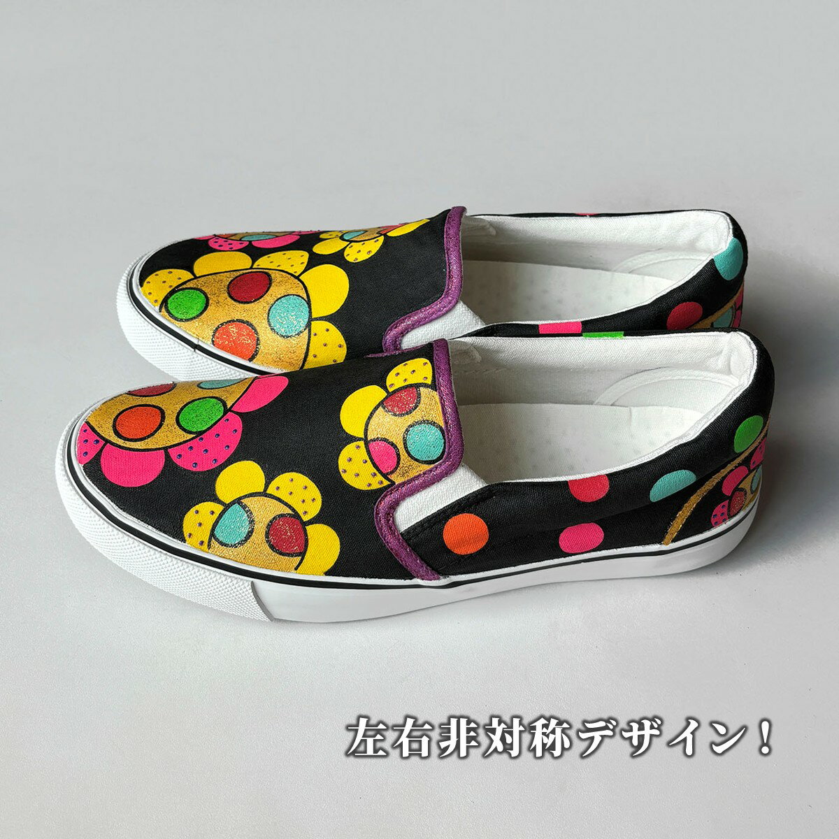 - 【ふるさと納税】スニーカー フラガール 手描きスリッポン 左右非対称デザイン 花模様 アシンメトリー 大人可愛い おしゃれ おすすめ レディース メンズ ユニセックス ワイズ 2E 22.0~28.0cm【受注制作】