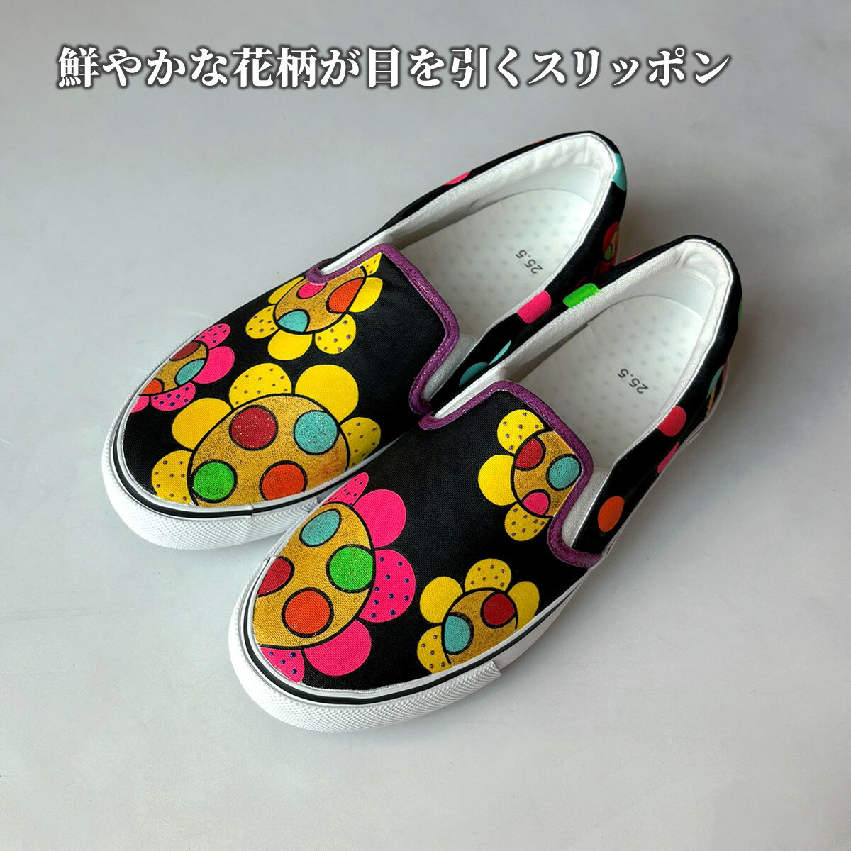 【ふるさと納税】スニーカー フラガール 手描きスリッポン 左右非対称デザイン 花模様 アシンメトリー 大人可愛い おしゃれ おすすめ レディース メンズ ユニセックス ワイズ 2E 22.0~28.0cm【受注制作】