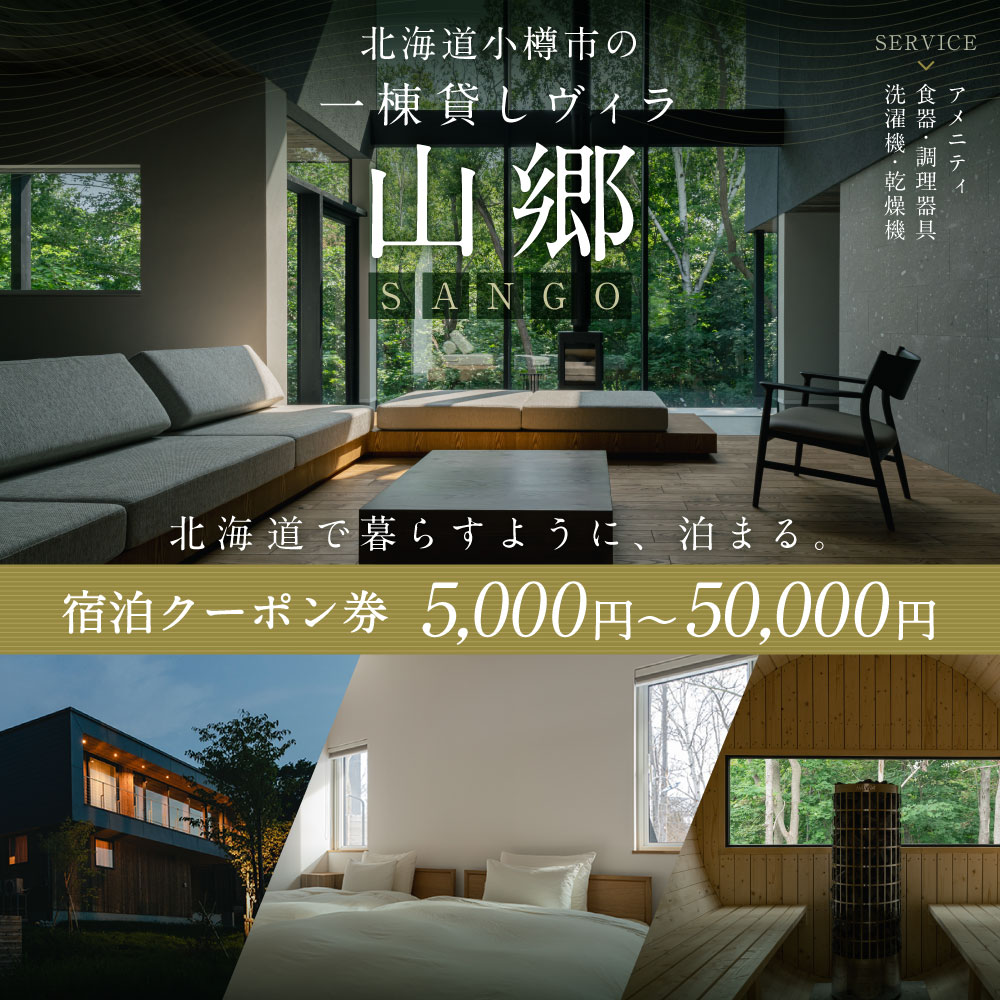 【ふるさと納税】<選べる金額>北海道小樽市の一棟貸しヴィラ「山郷」 宿泊クーポン券 1枚 5,000円分 / 10,000円分 / 30,000円分 / 50,000円分 宿泊券 施設利用券 商品券 旅行券 チケット ホテル 旅館 観光 旅行 トラベル 北海道 小樽市 送料無料