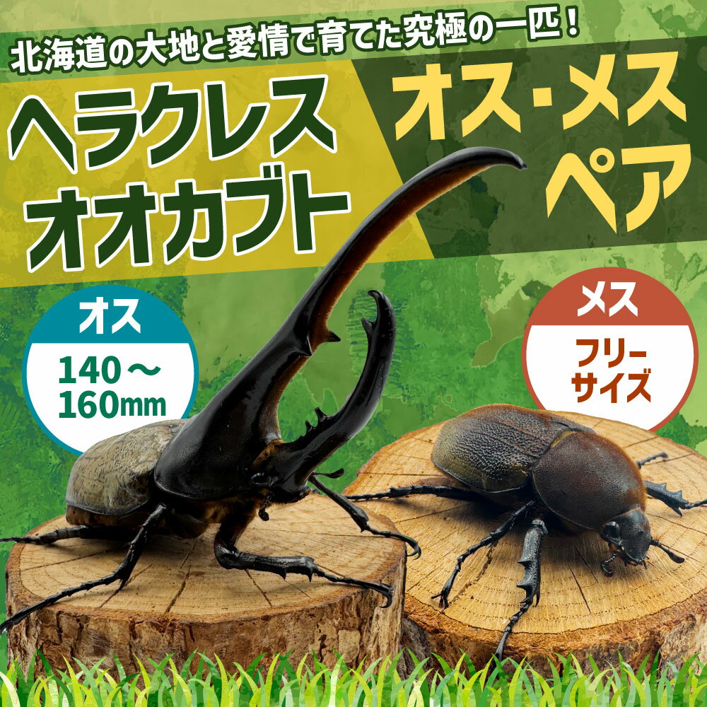 - 【ふるさと納税】【指定日必須】ヘラクレスオオカブト オス・メスペア(オスサイズ:大140~160mm、メスサイズ:フリーサイズ) 各1匹 カブトムシ かぶとむし 昆虫 成虫 むし 生き物 生体 飼育 子供 プレゼント 北海道 深川市 送料無料 【2026年3月上旬~12月下旬発送予定】