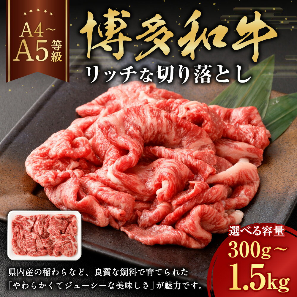 【ふるさと納税】<選べる内容量>【A4・A5】博多和牛 リッチな切り落とし 1パック300g 1/2/3/4/5パック 300g / 計600g / 計900g / 計1.2kg / 計1.5kg 和牛 牛肉 お肉 冷凍 福岡県産 国産 九州 福岡県 岡垣町 送料無料