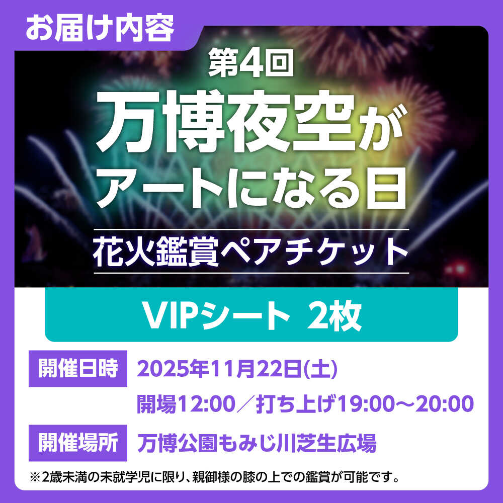 【ふるさと納税】第4回 万博夜空がアートになる日 花火鑑賞チケット ペアVIPシート 体験 チケット イベント イベントチケット 予約 シート 花火 花火大会 万博 指定席 観覧席 専用ゲート 食事 VIP ペア おすすめ 大阪 高槻 大阪府高槻市/万博花火プロジェクト[AOBL010]