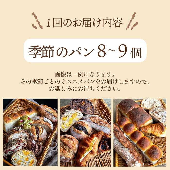 【ふるさと納税】【3ヵ月定期便】季節のオススメパンセット 8~9個入り / パン 食パン カンパーニュ ハード系 ハードパン 焼き菓子 国産小麦 米麹酵母 詰合せ セット 人気 朝食 昼食 朝ごはん 昼ごはん ランチ おやつ おすすめ 笑門ベーカリー 送料無料 愛知県 No.269