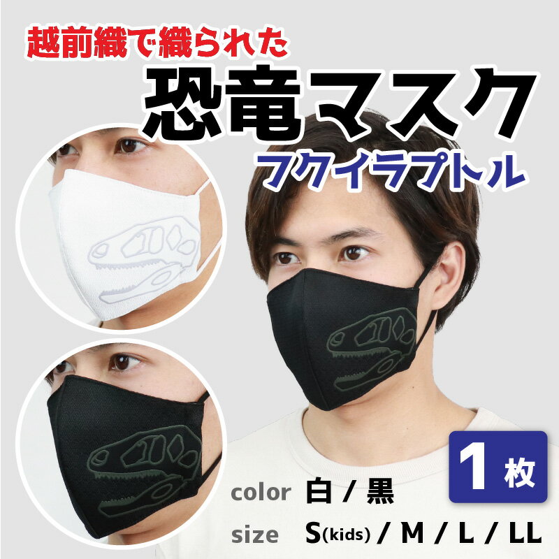 - 【ふるさと納税】越前織で織られた 「恐竜マスク フクイラプトル」 白・黒