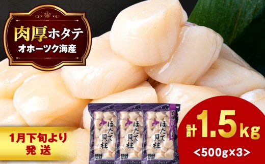 - 【1月末発送】ほたて 貝柱 大粒 冷凍 1.5kg(500g×3パック) お取り寄せ 刺身 《横田水産》