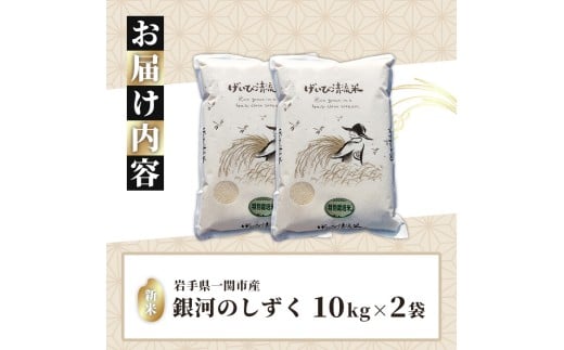 【 令和7年産 新米 】特別栽培米 銀河のしずく 20kg 岩手 お米 いわて コメ 精米 ブランド米 ご飯 白飯 ごはん お弁当 おにぎり 袋 東北 国産 岩手県 一関市