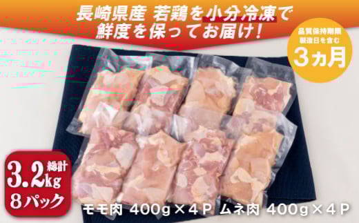 B321a ながさき福とり鶏肉モモ・ムネ切身(3.2kg)