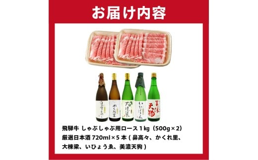 4-3 飛騨牛 しゃぶしゃぶ用ロース 1㎏(500g×2) + 厳選日本酒720ml×5本【岐阜県 可児市 酒 日本酒 飲料 地酒 アルコール 手作り ギフト プレゼント お祝い 肉 牛肉 】