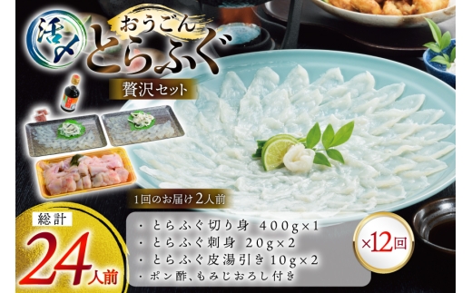 - ふぐ 刺身 ふぐ鍋セット 活〆 おうごんとらふぐ 贅沢 セット 2人前 12回 定期便 [松永水産 長崎県 平戸市 hr42bgy400016] ふぐ刺し とらふぐ フグ 河豚 てっさ てっちり ふぐ鍋 湯引き 魚介 さかな お刺身 刺身用 さしみ 冷凍 海鮮