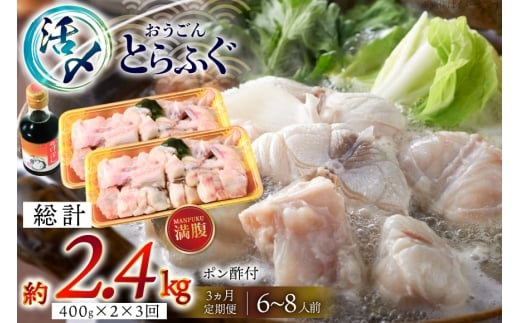 - ふぐ 鍋 セット 活〆 おうごんとらふぐ 満腹 鍋セット 約800g 3回 定期便 総計 約2.4kg [松永水産 長崎県 平戸市 hr42bgy400187] とらふぐ フグ 河豚 てっちり ふぐちり ふぐ料理 魚介 さかな 切り身 冷凍 海鮮 ふぐ鍋 唐揚げ