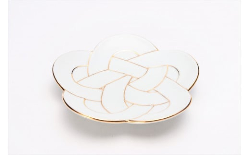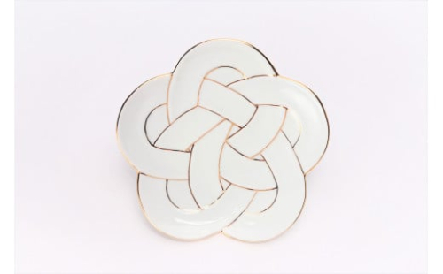 有田焼 金線梅むすび 銘々皿 ・ 小皿 4点セット【丸兄商社】食器 器 うつわ 陶磁器 食器セット 4枚 セット 皿 小皿 取皿 梅 結び 縁起物 お祝い お正月 おせち ハレの日 白磁 A40-402