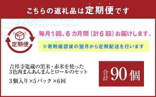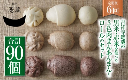 - 【6ヶ月定期便】吉祥寺篭蔵の黒米・赤米を使った3色肉まんあんまんとロールのセット 肉まん あんまん 冷凍