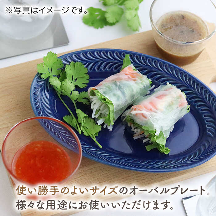 【ふるさと納税】【波佐見焼】ローズマリー リムオーバル プレート M ブルーグレー 2枚セット 食器 皿 【翔芳窯】 [FE85]