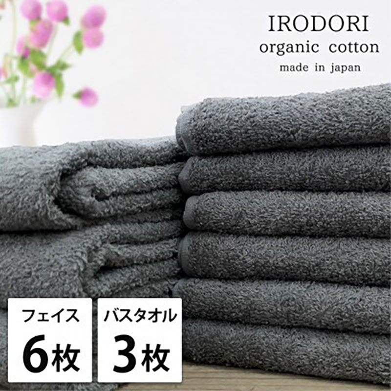 【ふるさと納税】タオルセット オーガニックコットン 彩り GY グレー フェイスタオル 6枚 バスタオル 3枚 フェイス タオル セット 綿 オーガニックコットンタオル 綿100% オーガニック 中厚手 大阪府 岸和田市 お届け:お申し込み後、3週間程度で順次発送予定