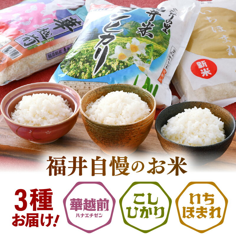 - 【ふるさと納税】【令和7年産】福井のお米食べ比べセット 2kg×3種 計6kg / 福井県産 ブランド米 ハナエチゼン・コシヒカリ・いちほまれ 精米 白米