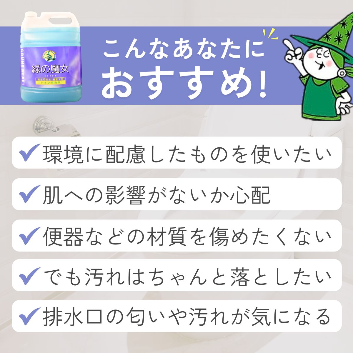 【ふるさと納税】緑の魔女 トイレ 5L |茨城県 龍ケ崎市 洗剤 パイプクリーナー 詰まり 臭い ニオイ 排水溝 環境配慮 詰替え 中性 汚れ 黄ばみ 黒ずみ 強力分解 安心 お中元 お歳暮 トイレ掃除 便器 ピカピカ