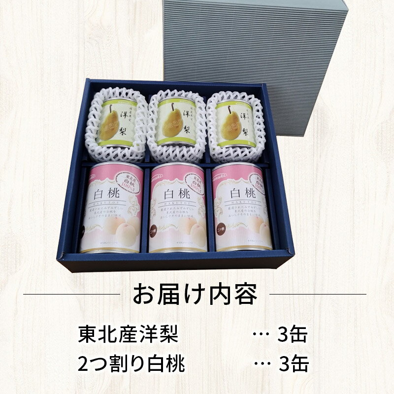 【ふるさと納税】Sanuki フルーツ缶詰 東北産洋梨・2つ割り白桃缶詰 各3缶セット