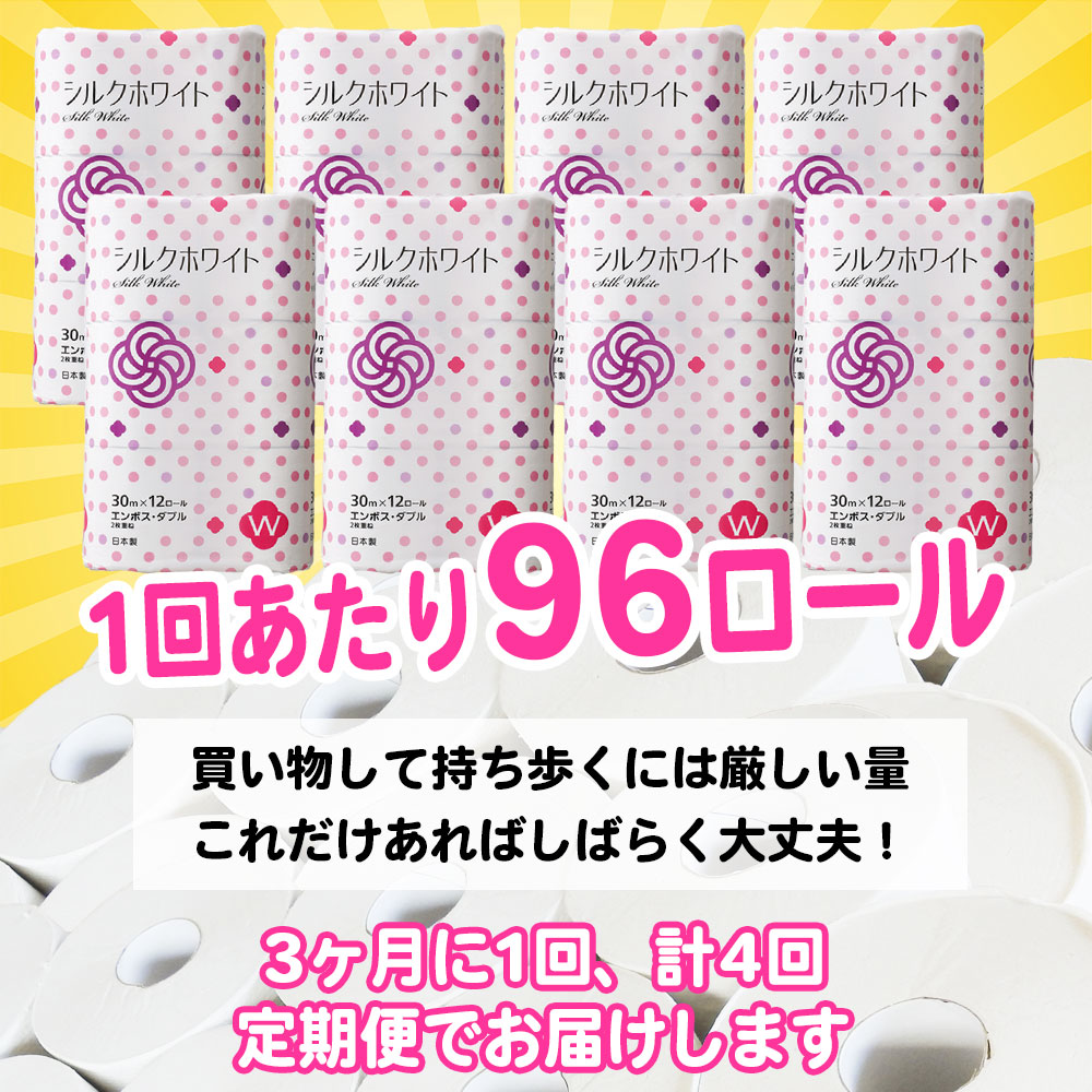 - 【ふるさと納税】定期便 3ヵ月に1回 計4回 トイレットペーパー ダブル 30m 96ロール (12R×8パック) まとめ買い ふるさと納税 エコ リサイクル 再生紙 無香料 吸水力 長持ち 日用品 大容量 便利 節約 お得 消耗品 ギフト 岩手県 一関市
