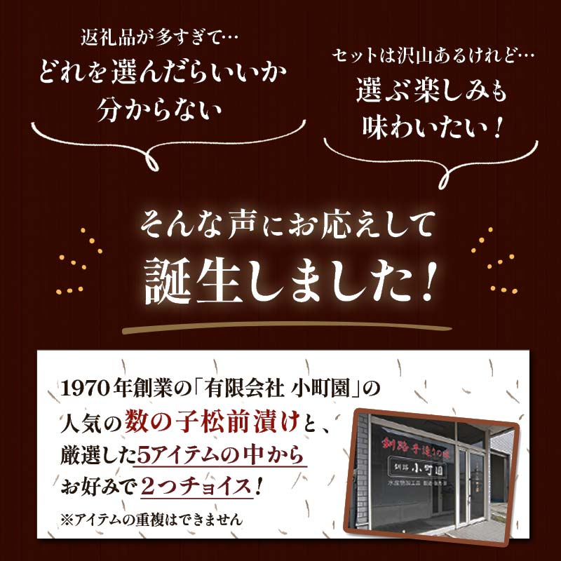 - 【ふるさと納税】 小町園の選んでおいしいセレクトBOX【おかずとしてもおいしい珍味編】 松前漬け 塩辛 えんがわ サーモン たこ つぶ わさび ご飯のお供 おかず 選べる 釧路 F4F-8664