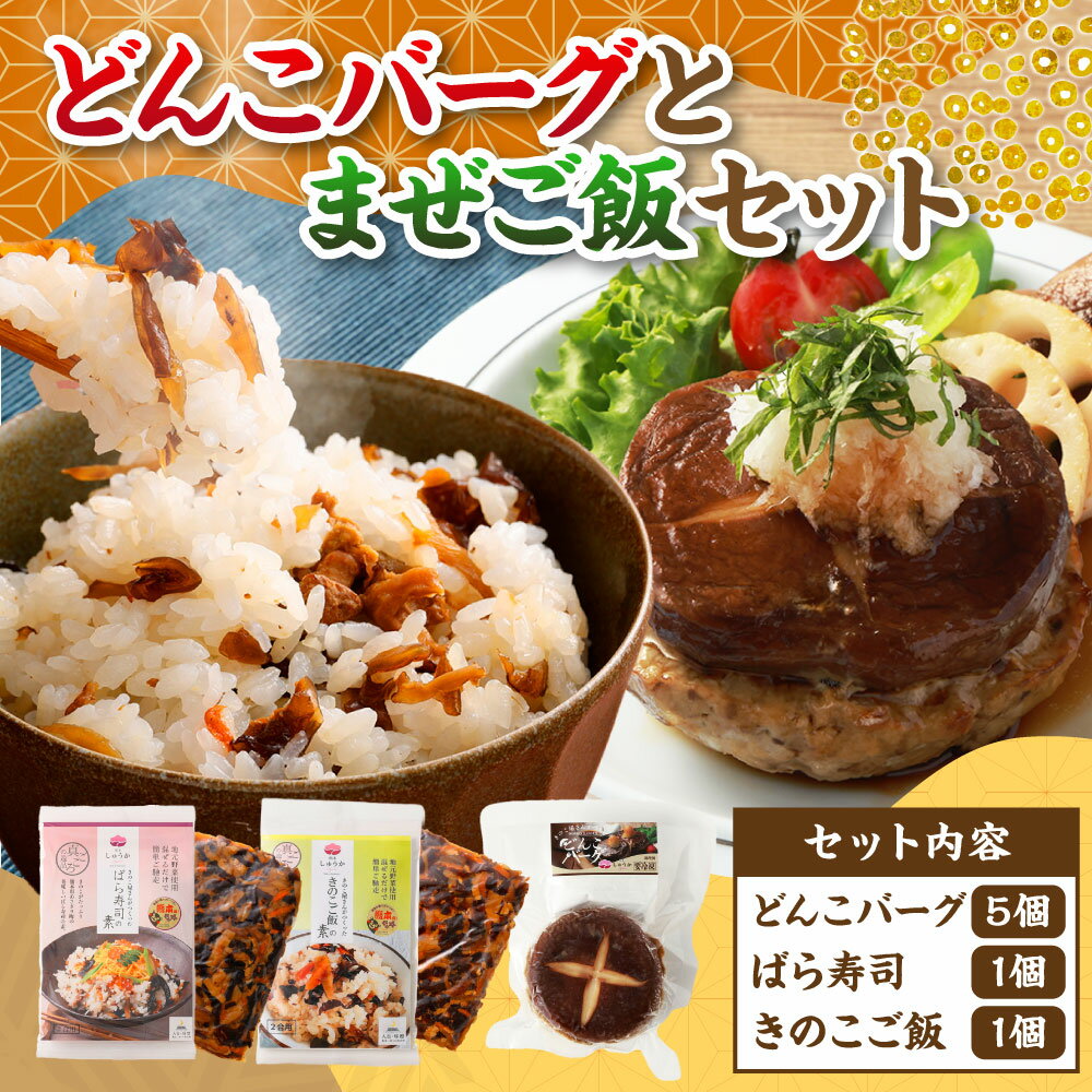 - 【ふるさと納税】熊本県産のどんこ(椎茸)を使ったどんこバーグ(5個入)&まぜご飯(2個)セット 計800g ばら寿司 きのこご飯 混ぜご飯の素 混ぜごはん すし 寿司 惣菜 非常食 保存食 豆腐 きのこ キノコ 茸 冷凍 国産 九州 熊本県 送料無料 【2025年11月上旬発送開始】