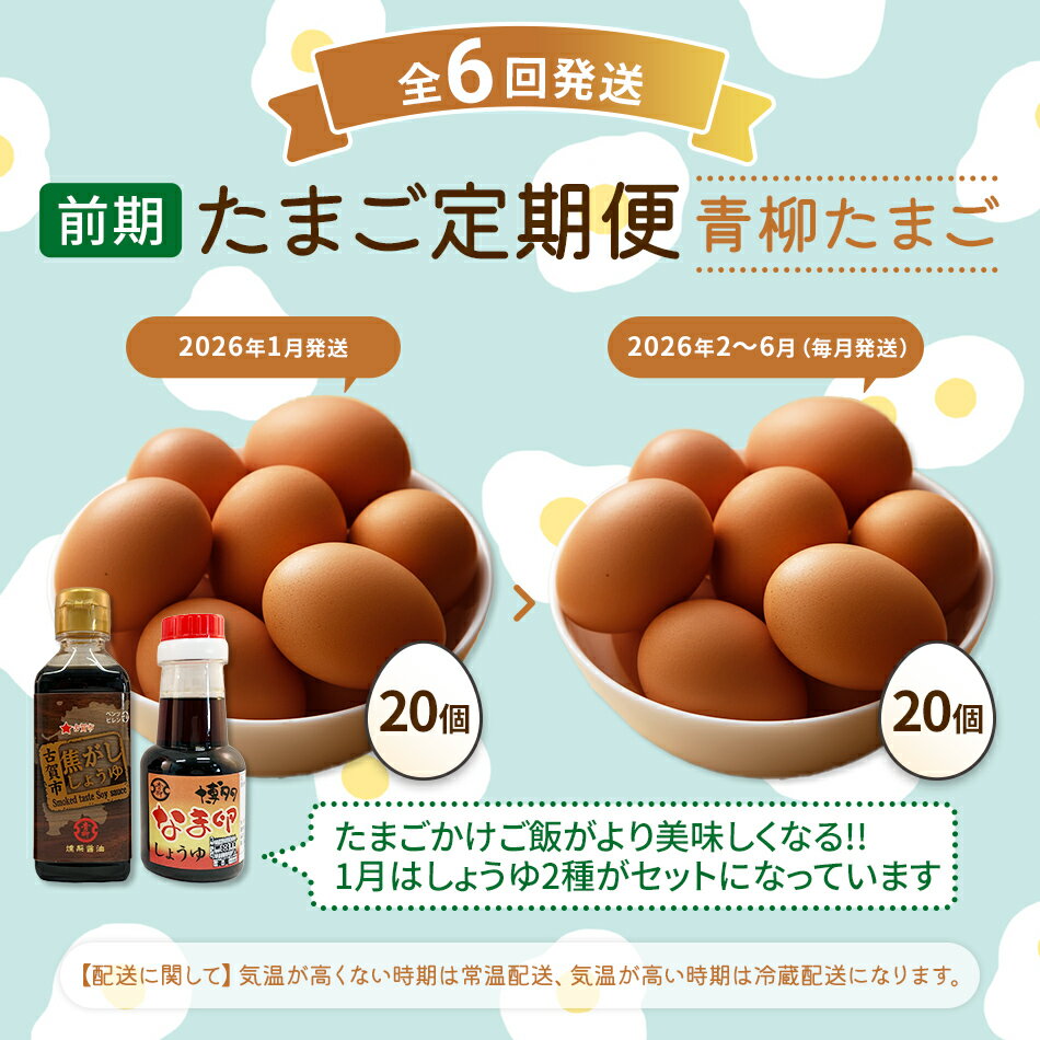 - 【ふるさと納税】たまご前期定期便 6回発送(初回のみ醤油付き・たまご20個)20個×6回 合計120個 定期便 6ヶ月 卵 おうはん卵 青柳たまご 送料無料 【2026年1月〜6月の計6回お届け】