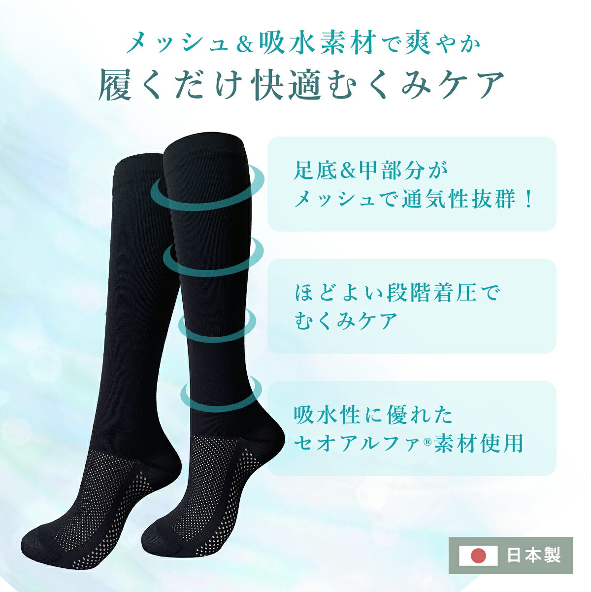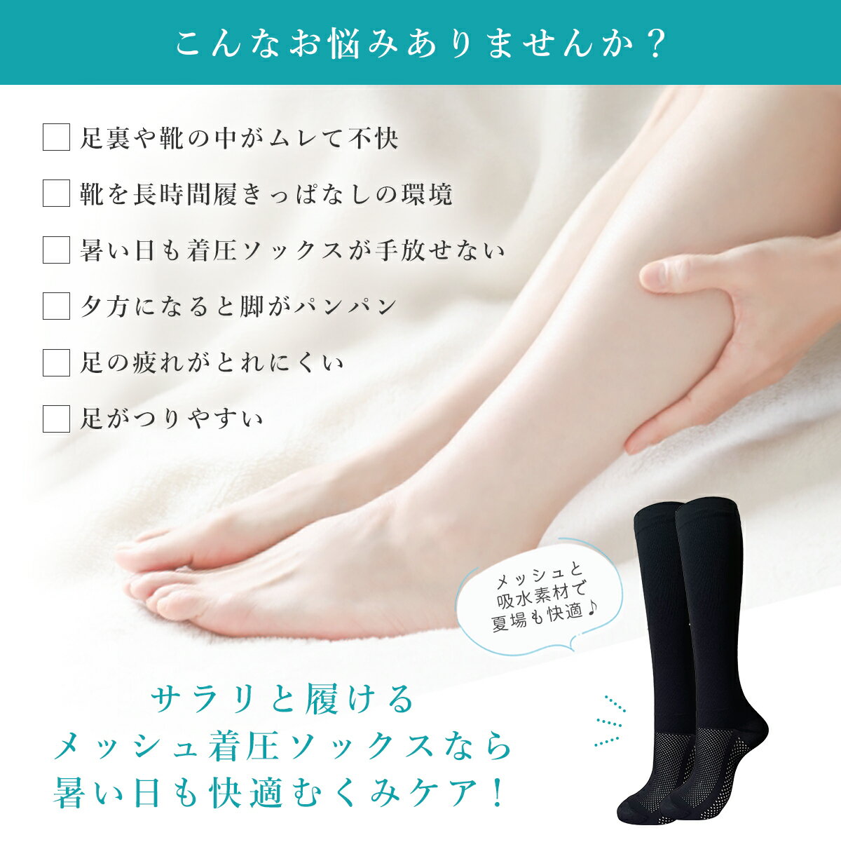 【ふるさと納税】メッシュ着圧ソックス 1足~3足セット/ 夏用着圧 冷感着圧 足底・足の甲 レディース 蒸れない靴下 吸水 メッシュ生地 ブラック 黒 ホワイト 白 22-25cm【nkmd004】