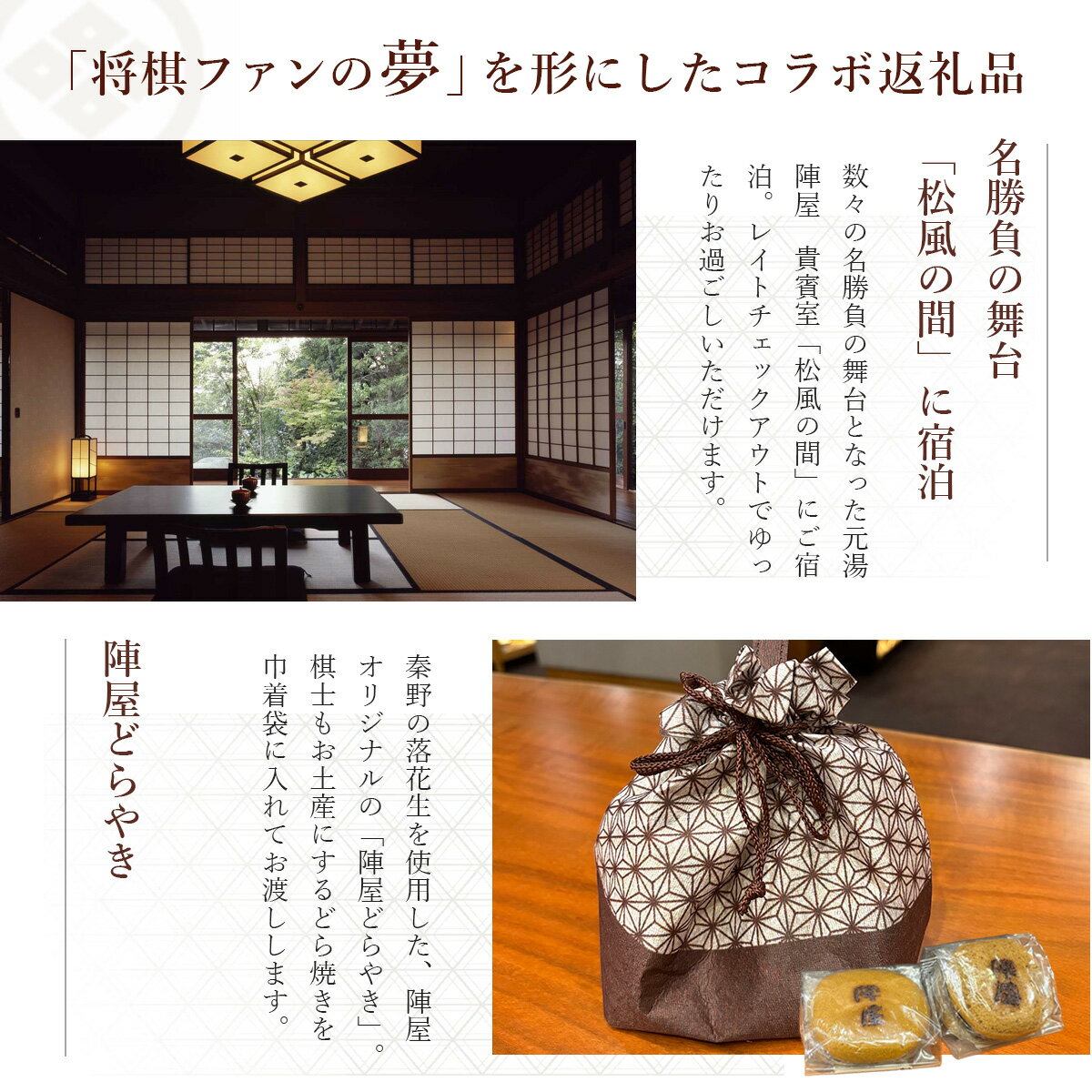 - 【ふるさと納税】元湯陣屋 将棋の名勝負の舞台 貴賓室「松風」に泊まる特別将棋プラン(一泊三食・二名様)|高級 温泉 宿泊 歴史 伝統 露天風呂付客室 一泊三食 レイトチェックアウト 会席 プレミアム 棋士 贅沢 記念日 特別 豪華 美食 ラグジュアリー 癒し 神奈川 鶴巻温泉