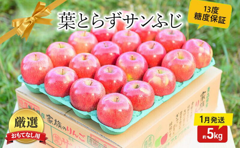 【ふるさと納税】【 1月発送 】 糖度13度以上 おもてなし用 家庭用 葉とらず サンふじ 約 5kg 【 青森りんご 】 果物 フルーツ デザート 食後 青森県産 産地直送 お届け:2026年1月20日頃~2026年1月31日