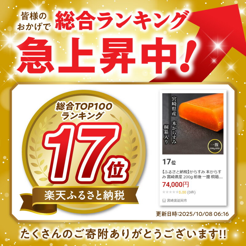 【ふるさと納税】からすみ 本からすみ 宮崎県産 200g 前後 一腹 桐箱 入り 国産 高級 贈答 贈り物 おつまみ 料理 トッピング パスタ リゾット 炒め物 お取り寄せ お取り寄せグルメ 宮崎県 延岡市 送料無料
