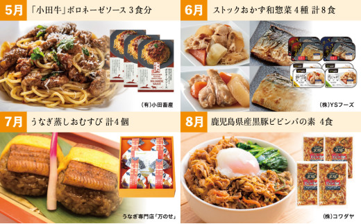 - 【定期便 全12回】お肉とお魚の贅沢おかず定期便 お肉とお魚の贅沢おかず定期便(全12回)毎月届くお楽しみ 惣菜 セット ハンバーグ ローストビーフ 焼き魚 煮魚 パスタソース うなぎ 鰻 ビビンバ 冷凍餃子 お吸物 鹿児島県産 黒毛和牛 黒豚 おかず コース 定期配送 南さつま市
