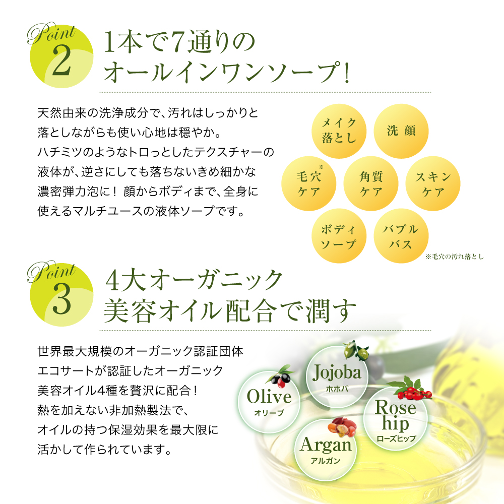 - メイクも落とせる1本7役 オーガニックソープ ホワイトローズの香り 250mL×4本