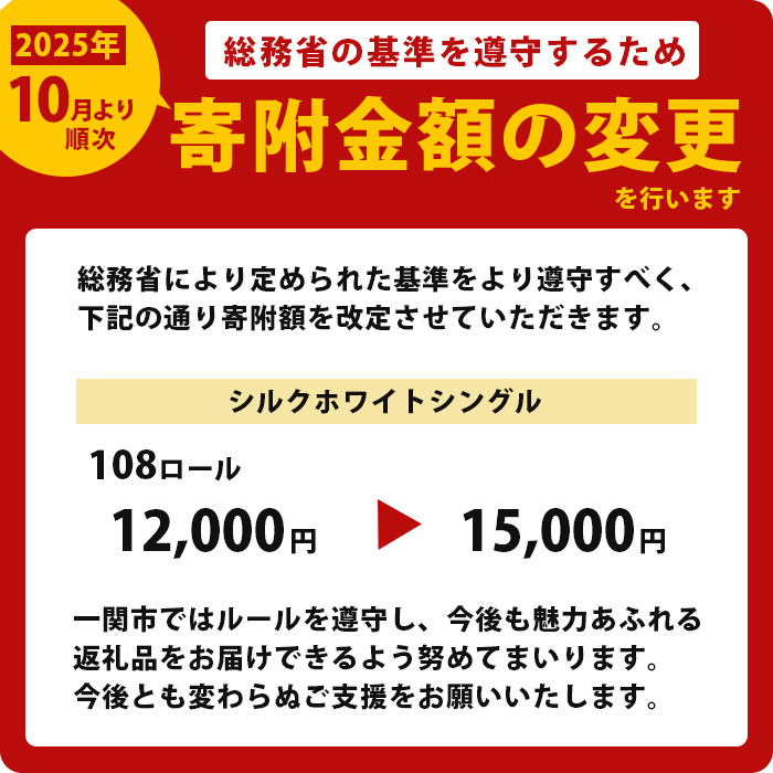 - 《11月発送》\配送時期が選べる/ トイレットペーパー シングル シルクホワイト 55m 12ロール×8パック (96ロール) 18ロール×6パック(108ロール) ふるさと納税 無香料 業務用 まとめ買い 再生紙 長尺 リサイクル エコ 柔らかい 人気 おすすめ 送料無料 岩手県 一関市
