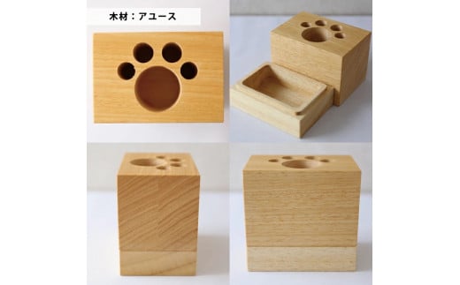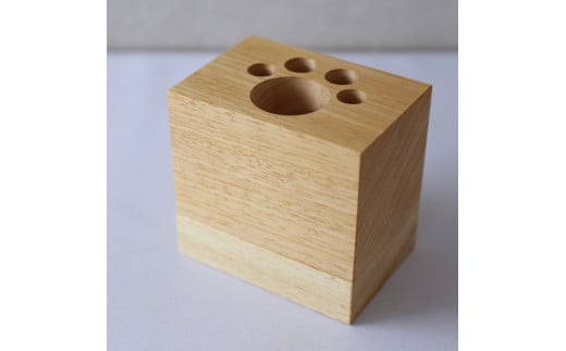 - 《3種の木材から選べる》収納付き木製ペン立て 肉球タイプ (アユース) SA1321