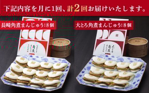 - 【2回定期便】長崎角煮まんじゅう 8個入(箱)・大とろ角煮まんじゅう 8個入(箱) ≪小値賀町≫【岩崎本舗】 角煮まん 角煮 豚角煮 簡単 惣菜 冷凍 おやつ ギフト 中華 長崎 [DBG051]