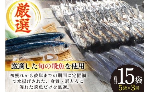 干物 炭火焼 塩あご 炭火で焼いた塩あご 3尾入り×5袋 3回 定期便 [マルイ水産商事 長崎県 平戸市 hr42bgy420397] だし 出汁 あごだし アゴ 焼あご 飛魚 ギフト 生月島
