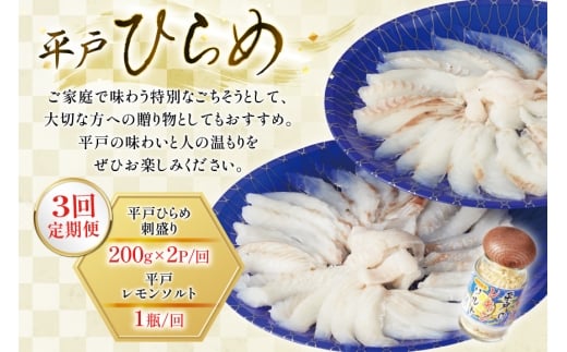 刺身 ヒラメ 刺盛り 200g 2パック 計 400g 3回定期便 総計 約1.2kg レモン塩付 [いけす居食家 大徳利 長崎県 平戸市 hr42bgy390013] ひらめ 刺盛り さしみ おつまみ