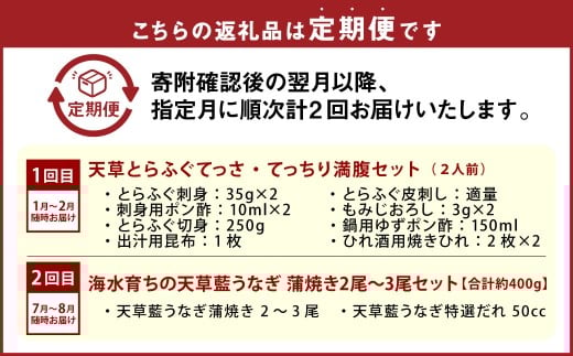 - 【2回定期便】【極】季節めぐり定期便2 ふぐ フグ 河豚 とらふぐ トラフグ てっさ てっちり うなぎ ウナギ 鰻 熊本県 上天草市