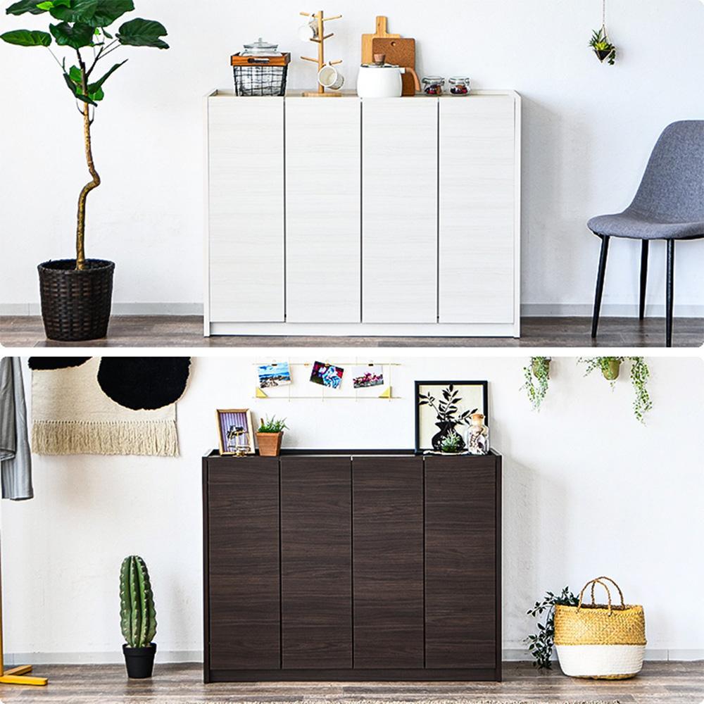 - 【ふるさと納税】玄関収納 多目的収納 120 ロータイプ【2色対応】シューズボックス 靴箱 食器棚 シンプル 開き扉 可動棚 収納棚 水洗い可能棚板 耐水 大川 家具