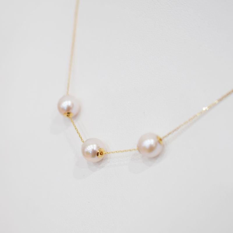 - 【ふるさと納税】あこや真珠 天草 ネックレス ピンク スルー シリコン 3連 7.5mm - 8mm 調色 真珠 パール ホワイトピンク 選べる 金具 K18YG K18WG アクセサリー ジュエリー 品質保証書 ジュエリーケース 真珠てりクロス お取り寄せ 熊本県 天草市 送料無料