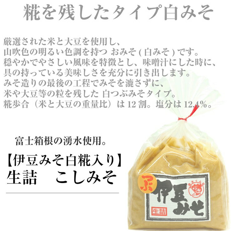 【ふるさと納税】 水の都 三島 伊豆みそ白 糀入り 生詰 つぶみそ 1kg 2個セット 白みそ 味噌 おみそ 伊豆 発酵食品 調味料 和食 郷土料理 健康食品 米麹 大豆 発酵 栄養 腸活 美容 ダイエット 料理 スープ 雑炊 三島市 静岡県