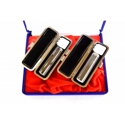 - 【ふるさと納税】手彫り職人が彫った水晶印鑑実印16.5mm・銀行印13.5mmの2本セット花柄入りケース(男性向け)【配送不可地域:離島】【1312002】