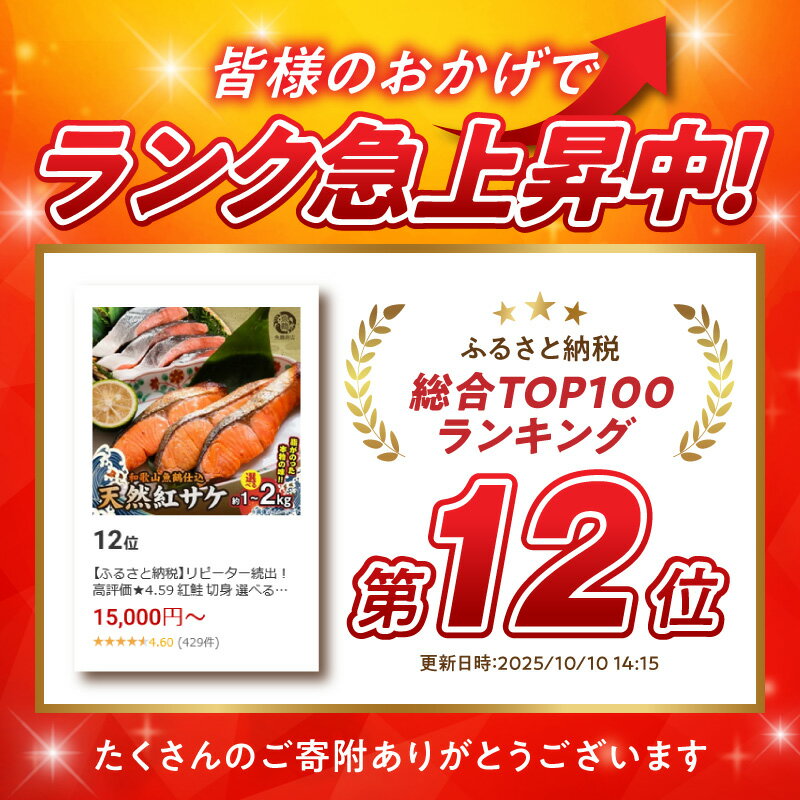 - 【ふるさと納税】リピーター続出! 高評価★4.59 紅鮭 切身 選べる 内容量 約 1kg ~ 2kg 梅酒 真昆布 使用 だし まろやか 天然 鮭 魚 海の幸 海鮮 魚介 食品 食べ物 焼き魚 おかず お弁当 水産加工品 冷凍 グルメ 和歌山県 湯浅町 送料無料