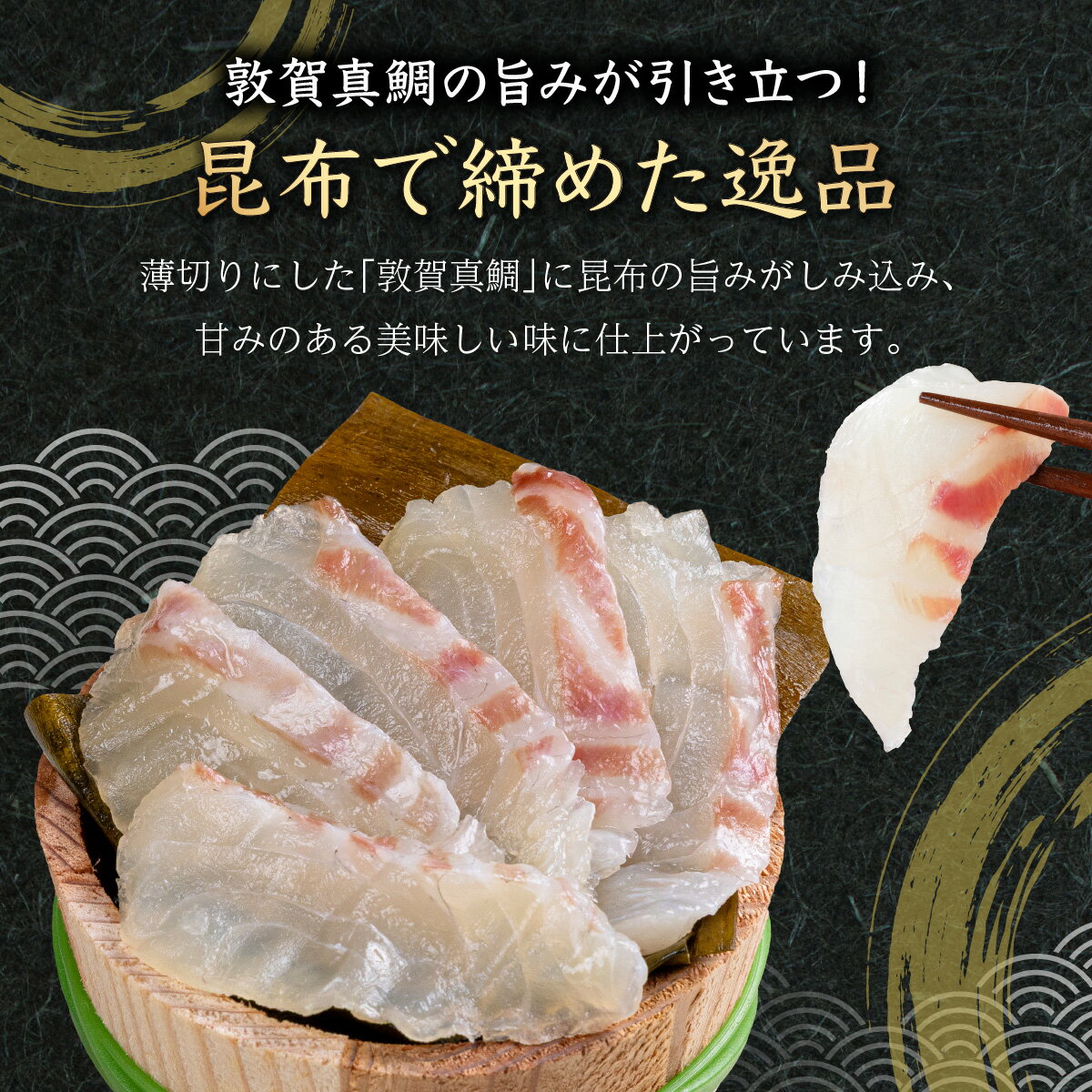 【ふるさと納税】鯛 「敦賀真鯛昆布〆 (鯛身 約350g)」 あけぼの旅館オリジナル!敦賀真鯛を薄切りにし、昆布で締めた逸品です。 昆布の旨味がギューッとしみ込み、お酒の肴に最適! 【タイ マダイ 冷凍 昆布締め 刺身 鯛 敦賀真鯛 魚 簡単 おかず おつまみ 酒 アテ 魚料理】